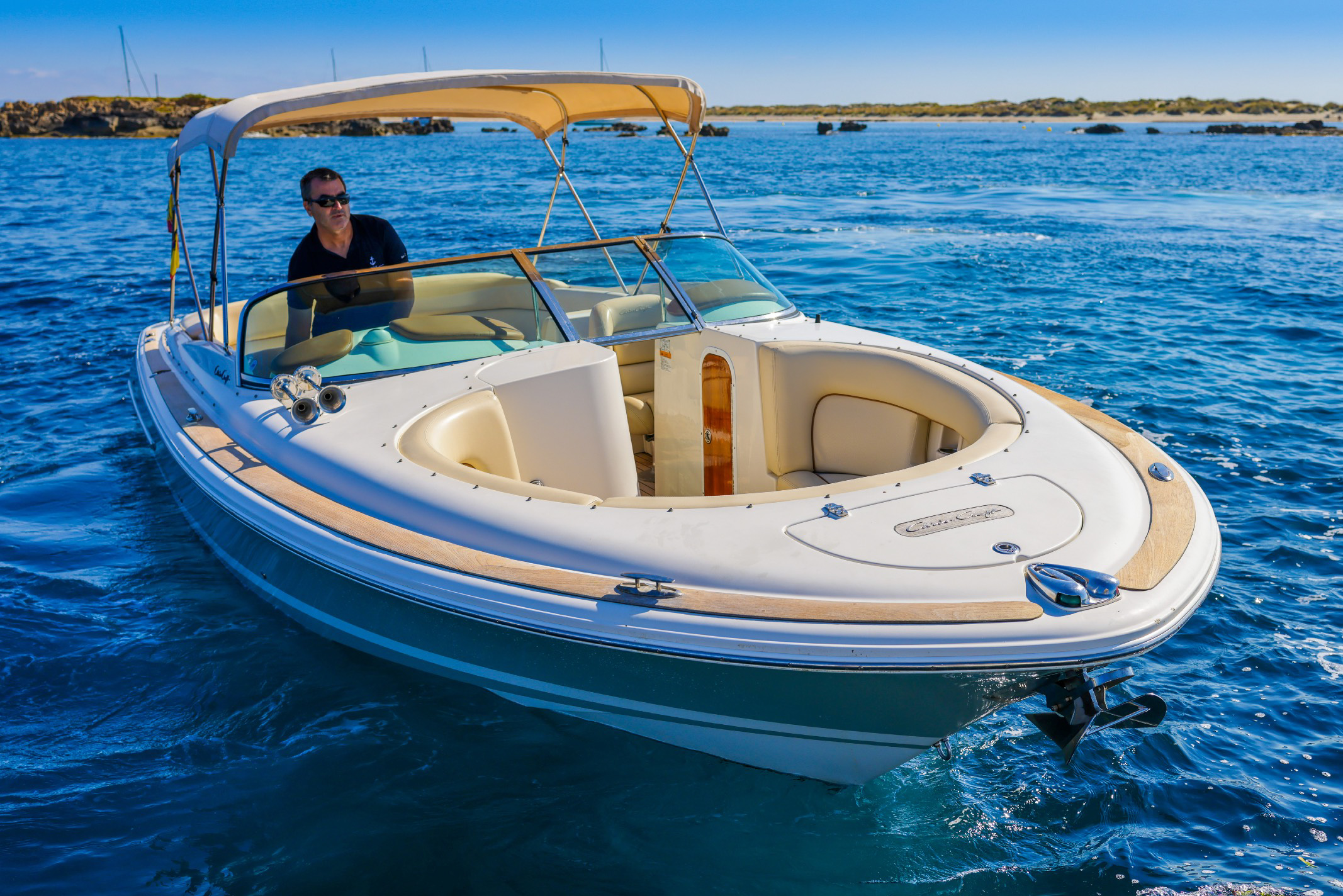 El barco Chris Craft Launch 28 007, tiene una navegación deportiva que le hará vivir una experiencia única navegando y le dejará una sensación que no podrá olvidar, Chris Craft 28 es una lancha de lujo con la que vivir momentos inolvidables navegando por Ibiza y Formentera. Si hemos de definir esta lancha de alquiler en Ibiza diremos que la Chris Craft es exclusividad, clase y distinción.