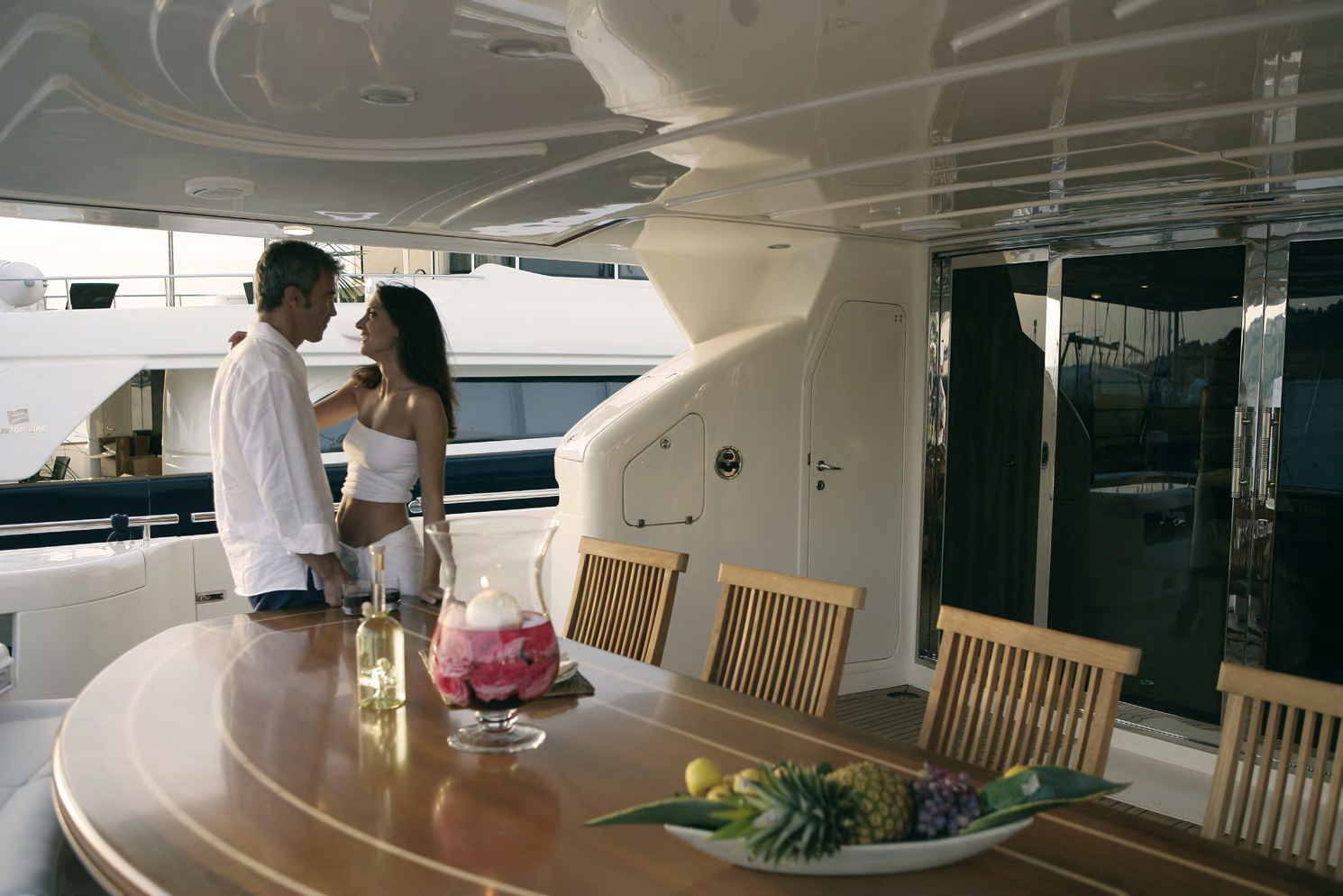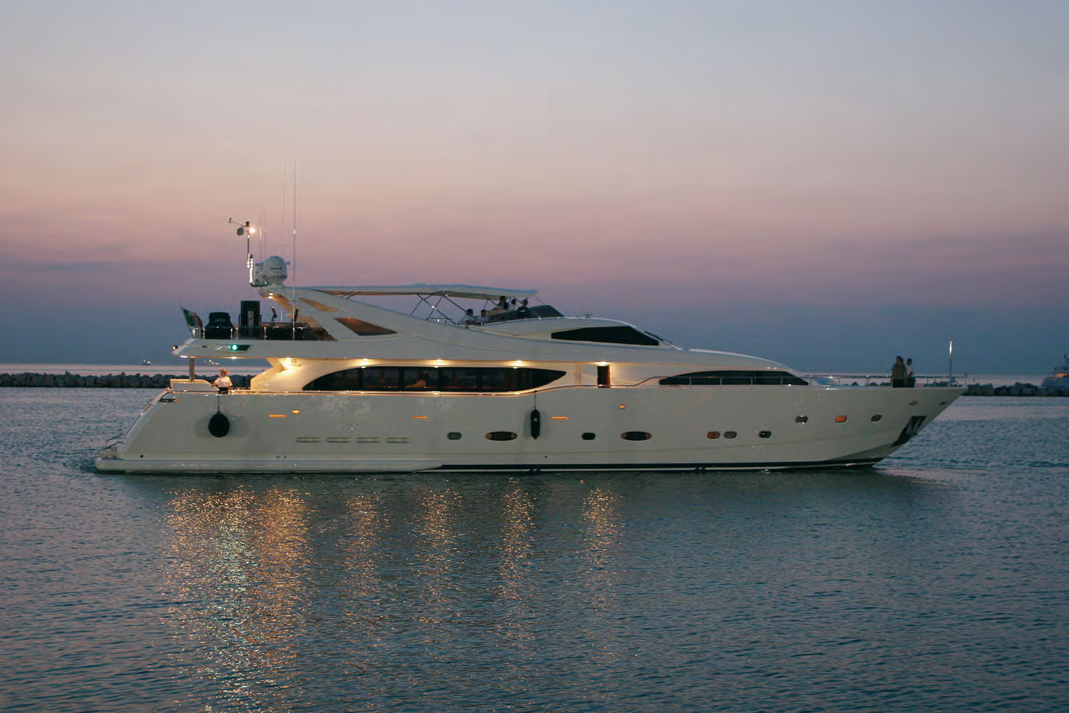 Megayate de 34 metros de eslora lanzado en 2005 por el renombrado astillero italiano Ferretti y completamente renovado en 2014. Estilo atemporal, hermosos muebles y suntuosos asientos crean un ambiente elegante y confortable. Combina a la perfección la elegancia de la Custom Line de Ferretti con la comodidad de un yate moderno.